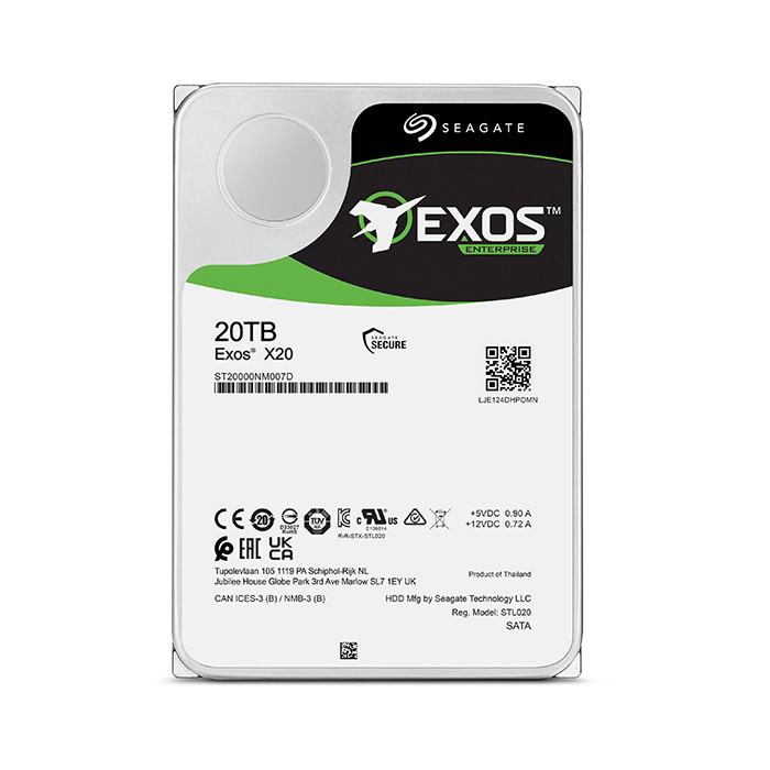 Seagate Exos X20 ST20000NM007D 20TB 7200 RPM 256MB Cache SATA 6.0Gb/s 3.5″ Internal Hard Drive