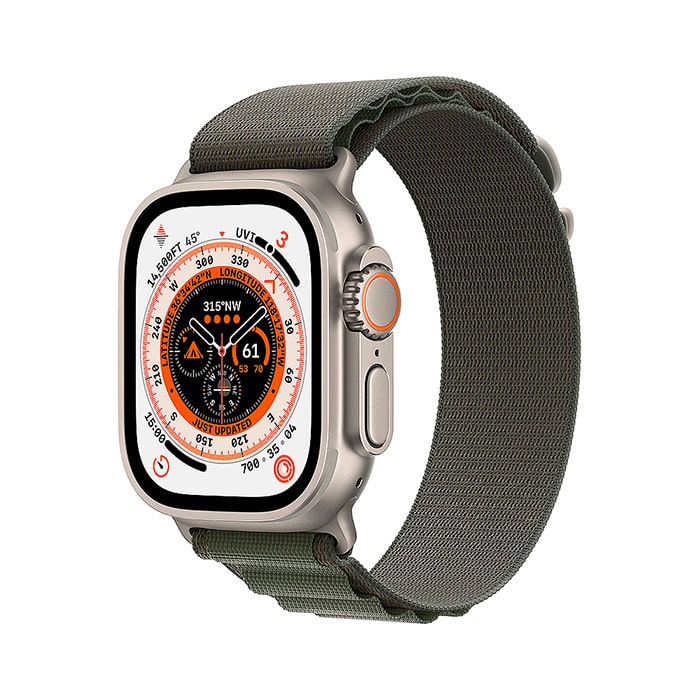ساعت هوشمند اپل سری Ultra بدنه تیتانیومی 49 میلمتری با بند Green Alpine Loop