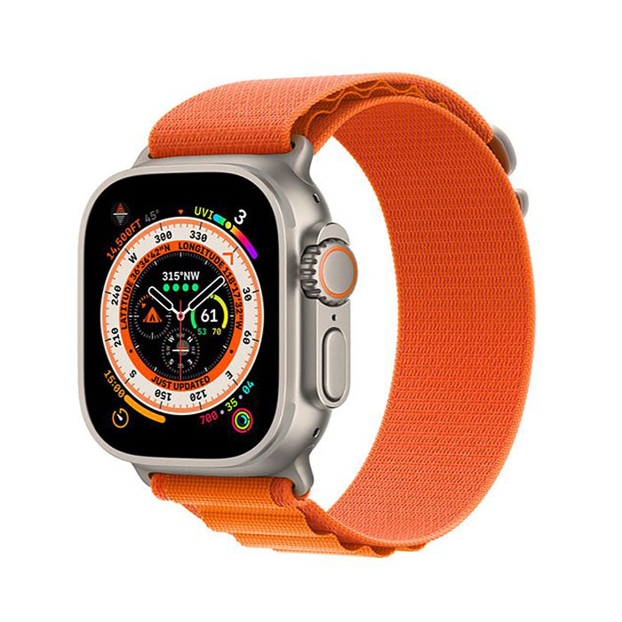 ساعت هوشمند اپل سری Ultra بدنه تیتانیومی 49 میلمتری با بند Orange Alpine Loop