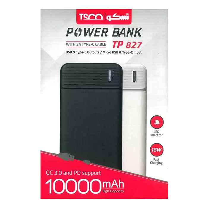 پاوربانک تسکو TP 827 ظرفیت 10000 میلی آمپر ساعت