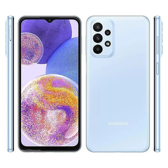 گوشی سامسونگ A23 یکی از محصولات شرکت سامسونگ در رده اقتصادی می باشد که در سال 2022 وارد بازار شده است.با توجه به قیمت این محصول ، امکانات مناسبی توسط تیم سامسونگ به آن اضافه شده است که ارزش خرید آن را بالا برده است.Galaxy A23 با صفحه نمایش 6.5 اینچی و تراکم پیکسلی 270 پیکسل و رزولوشن 720 × 1600 پیکسل تصاویر قابل قبولی از خود ارائه می دهد.این محصول با تکنولوژی PLS TFT ساخته شده است و از قابلیت نمایش 16 میلیون رنگ پشتیبانی می کند.پردازنده MediaTek Helio G85 و حافظه RAM 4 گیگابایتی و حافظه داخلی 128 گیگابایتی که با استفاده از کارت حافظه قابل افزایش است، مناسب برای اجرای برنامههای روزمره و بازی های سطح پایین میباشد.دوربین اصلی 50 مگاپیکسلی این گوشی با قابلیت ضبط ویدیوهای 1080p با سرعت 30 فریم بر ثانیه و همچنین از دوربین عریض 8 مگاپیکسلی، دوربین ماکرو 2 مگاپیکسلی و دوربین عمق 2 مگاپیکسلی پشتیبانی میکند.دوربین سلفی 8 مگاپیکسلی در جلو برای مکالمات ویدئویی عملکرد قابل قبولی ارائه می دهد.این دوربین ها با قابلیتهایی مانند فوکوس اتوماتیک، HDR و پانوراما به همراه برخی از امکانات دیگر همراه است.گوشی Samsung Galaxy A23 با باتری با ظرفیت 5000 میلیآمپر ساعت که قابلیت شارژ سریع 15 وات را نیز داراست، برای استفاده روزانه و وب گردی مداوم مناسب است. در ضمن، این گوشی دارای امکاناتی مانند Wi-Fi ، بلوتوث ، GPS ، NFC ، سنسور اثرانگشت در پشت ، شتابسنج ، ژیروسکوپ ، سنجش نور محیطی و... است که برای یک گوشی ارزان قیمت می تواند امکانات مناسبی باشد.قیمت گوشی سامسونگ Galaxy A23 نسبت به سایر رقبا بسیار مناسب می باشد و با توجه به مشخصاتی که گفته شد کسانی که بودجه کمی را برای خرید گوشی در نظر گرفته اند می تواند یکی از گزینه های خوب باشد.اگر قصد خرید یک گوشی ارزان قیمت سامسونگ را دارید می توان با اطمینان گفت که سامسونگ A23 یکی از بهترین می باشد. همین حالا می توانید این محصول را به سبد خرید خود به صورت نقد و اقساط اضافه کنید.