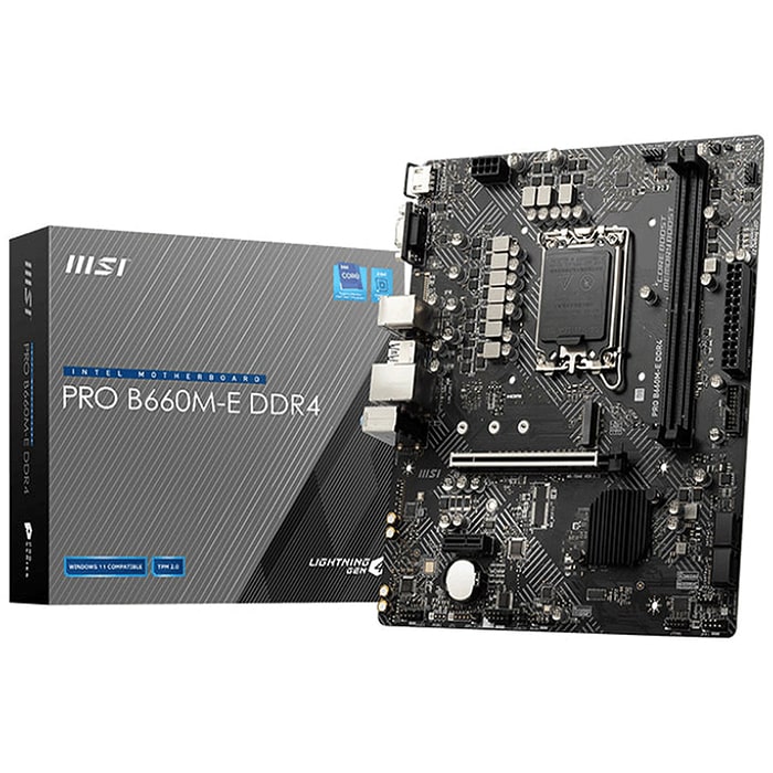 مادربرد های سری PRO با ارائه یک تجربه کارآمد و سازنده به کاربران کمک می کند تا تجربه ای فراتر از گذشته داشته باشند. مادربرد ام اس آی PRO B660M-E با عملکرد پایدار و مونتاژ با کیفیت بالا، راندمان فوق العاده عالی را ارائه می دهد که برای هر کاربر حرفه ای و علاقمندان به بازی های رایانه ای ضروری است. مادربرد ام اس آی PRO B660M-E مانند سابر مادربردهای ساخته شده توسط این برند، دارای چندین طراحی راحت و هوشمند برای کاربران هستند. در حقیقت این مدل از مادربردهای موجود در بازار، ابزارهای تنظیم بیشماری را در اختیار شما قرار می دهند تا سیستم خود را به بالاترین سطح کیفیت ارتقا بدهید. این در حالی است که نصب و مونتاژ مادربرد ام اس آی PRO B660M-E بسیار راحت و آسان است. برخورداری از خنک کننده FROZR AI به همراه کنترل کامل فن و امکان تشخیص دمای CPU و تنظیم خودکار وظیفه فن به مقدار مناسب با استفاده از MSI AI ENGINE مهمترین مشخصات مادربرد ام اس آی PRO B660M-Elمحسوب می شوند. عملکرد فوق العاده عالی این مادربرد مثال زدنی است و زمانی تکمیل می شود که با حالت بی صدا همراه است. به طور کلی، مادربردهای سری MSI PRO امکانات زیادی برای پاسخگویی به نیاز کاربران ارائه می دهند. LAN پایدار، ذخیره سازی سریعتر و سرعت انتقال USB و سایر کانکتورهای قابل ارتقا برای افزایش انعطاف پذیری شما، آماده هستند. پشتیبانی از فناوری MSI lightning Gen 4 PCI-E جدیدترین و سریعترین راه حل انتقال داده PCI-E با پهنای باند انتقال 64 گیگابایت بر ثانیه است که در مقایسه با نسل قبلی خود دو برابر شده است. PCIe 4.0 سازگاری رو به عقب و جلو را با مشخصات قدیمی و جدیدتر حفظ می کند. مادربرد ام اس آی PRO B660M-Eبه اندازه محکم و مقاوم ساخته شده است که می تواند وزن کارت های گرافیک سنگین را تحمل کند.