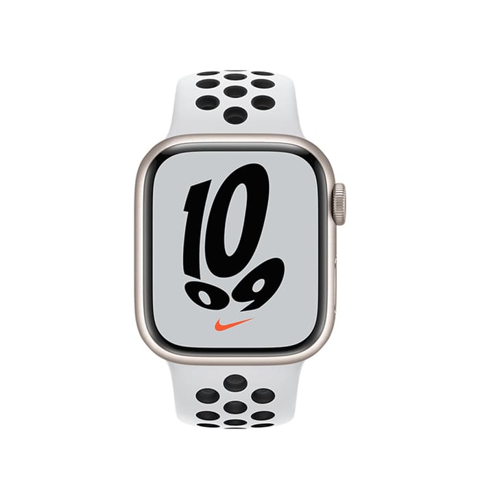 ساعت هوشمند اپل واچ نایکی سری 7 آلومینیوم Starlight با بند اسپرت سیلیکون پلاتینیوم 41 میلی متری