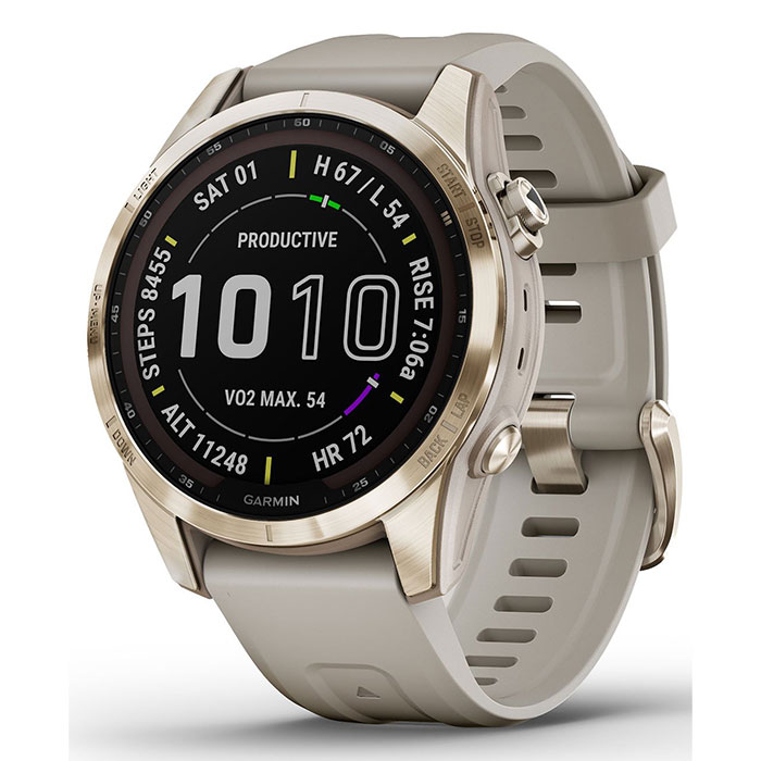 ساعت گارمین fenix 7S Sapphire Solar Cream Gold Titanium with Cream Heathered Nylon Band