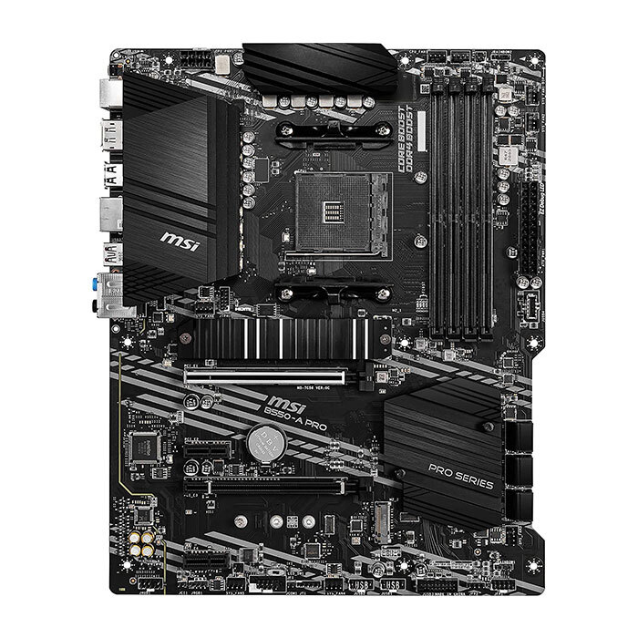 MSI B550-A PRO با پشتیبانی از پردازنده های AMD Ryzen AM4، عملکرد پایدار و مونتاژ با کیفیت بالا را برای حل جریان های کاری حرفه ای ترکیب می کند. طراحی هیت سینک توسعه یافته و تقویت هسته باعث می شود اجزای حیاتی به طور قابل اعتماد کار کنند. اسلاتهای PCIe 4.0 و M.2 با Shield Frozr جدیدترین اتصالات دستگاه را فراهم می کنند.سری PRO با ارائه یک تجربه کارآمد و سازنده به کاربران کمک می کند هوشمندتر کار کنند. مادربرد های سری PRO نه تنها گردش کار حرفه ای را بهینه می کنند، بلکه عیب یابی و طول عمر کمتری را نیز ارائه می دهند. کاملا واضح است که با پردازنده های هستهای بیشتر، طراحی حرارتی و قدرت برای اطمینان از پایین تر ماندن دما، امری مهم و ضروری است. هیت سینک پیشرفته MSI PWM با پد حرارتی 7W/mK حتی پردازنده های سطح بالا را تضمین می کند که با مادربرد های MSI با سرعت کامل کار کنند. مادربرد های سری MSI PRO از آخرین استاندارد های ذخیره سازی پشتیبانی می کنند که به کاربران امکان می دهد هر دستگاه ذخیره سازی فوق سریع را متصل کنند. با توجه به اینکه مادربردهای MSI دارای طراحی های پیشرفته متعددی هستند تا سیستم شما را به ارتفاعات جدیدی برسانند و حتی سختگیرترین توئیترها را راضی کنند، پیشنهاد ما به شما، خرید مادربرد ام اس آی مدل B550-A PROاست. در مجموع، مادربردهای سری MSI PRO دارای امکانات فراوانی برای نیاز مشتریان هستند. LAN پایدار، ذخیره سازی سریعتر و سرعت انتقال USB و سایر اتصالات قابل ارتقا برای افزایش انعطاف پذیری شما آماده هستند. همه چیز فراهم شده تا از خرید این مادربرد نهایت لذت را ببرید و به دلیل پشتیبانی مادربرد ام اس آی مدل B550-A PROاز کیفیت صدای بالا، تجربه شنیداری بهتری داشته باشید.