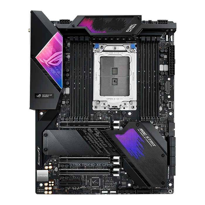 مادربرد ASUS ROG TRX40-XE Gaming WiFi یک مدل قدرتمند و بهبود یافته در سری TRX40 است که برای کاربرانی ساخته شده که نیازمند قدرت پردازشی بی وقفه و پایدار هستند . این مادربرد با پشتیبانی از پردازنده های AMD Ryzen Threadripper ، توان برق رسانی تقویتشده ، اسلات های PCIe 4.0 ، سه اسلات M.2 و طراحی حرفه ای ، امکان اجرای پروژه های سنگین مانند رندرینگ سه بعدی ، تدوین و پردازش داده را فراهم می کند .