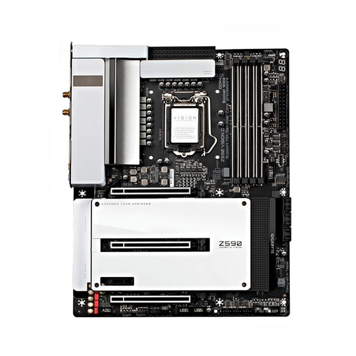 مادربرد Gigabyte Z590 VISION D یک مادربرد حرفه ای و مدرن برای کاربران خلاق ، گیمرها و اورکلاکرها است که به دنبال پایداری ، عملکرد بالا و امکانات کامل هستند . این مادربرد با چیپست Z590 و پشتیبانی از پردازنده های نسل دهم و یازدهم اینتل ، توانایی اجرای سنگین ترین برنامه ها و پروژه های رندرینگ را داراست .