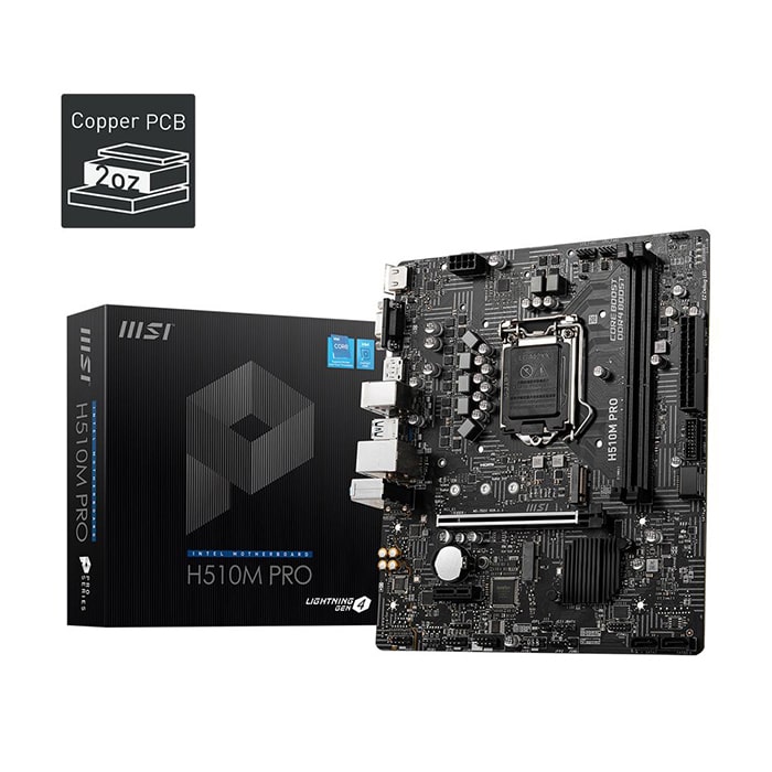 مادربرد ام اس آی H510 M PRO یک مادربرد جمع و جور ، کاربردی و مقرون به صرفه با سوکت LGA1200 است که از پردازنده های نسل 10 و 11 اینتل پشتیبانی می کند . این مدل با اسلات M.2 ، مدار تغذیه پایدار و طراحی سری PRO برای استفاده طولانی مدت در محیط های اداری و خانگی گزینه ای ایده آل محسوب می شود .