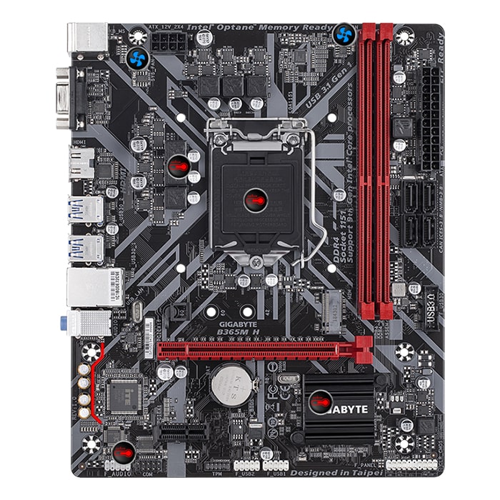 مادربرد گیگابایت B365M H (rev. 1.0) یک مادربرد کاربردی و اقتصادی با چیپست B365 و سوکت LGA1151 است که از پردازنده های نسل 8 و 9 اینتل پشتیبانی می کند . این مدل با فرم فکتور microATX ، پورت های کامل و پشتیبانی از حافظه DDR4 ، گزینه ای مناسب برای سیستم های خانگی و اداری محسوب می شود .