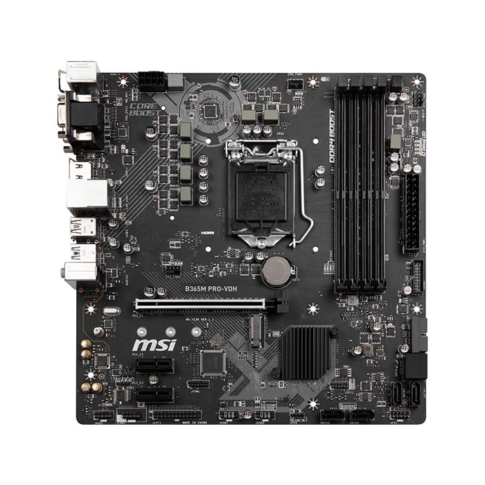 مادربرد MSI B365M PRO-VDH یک مادربرد کاربردی و اقتصادی با چیپست B365 و سوکت LGA1151 است که از پردازنده های نسل 8 و 9 اینتل پشتیبانی می کند . این مدل با فرم فکتور microATX ، پورت های کامل و پشتیبانی از حافظه DDR4 ، گزینه ای مناسب برای سیستم های خانگی و اداری است .