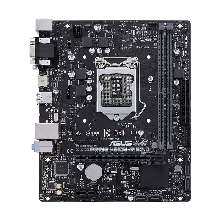 مادربرد ایسوس PRIME H310M-R R2.0 یک مادربرد اقتصادی و کاربردی با چیپست H310 و سوکت LGA1151 است که از پردازنده های نسل 8 و 9 اینتل پشتیبانی می کند . این مدل با فرم فکتور microATX ، پورت های کامل و پشتیبانی از حافظه DDR4 ، گزینه ای مناسب برای سیستم های خانگی و اداری است .