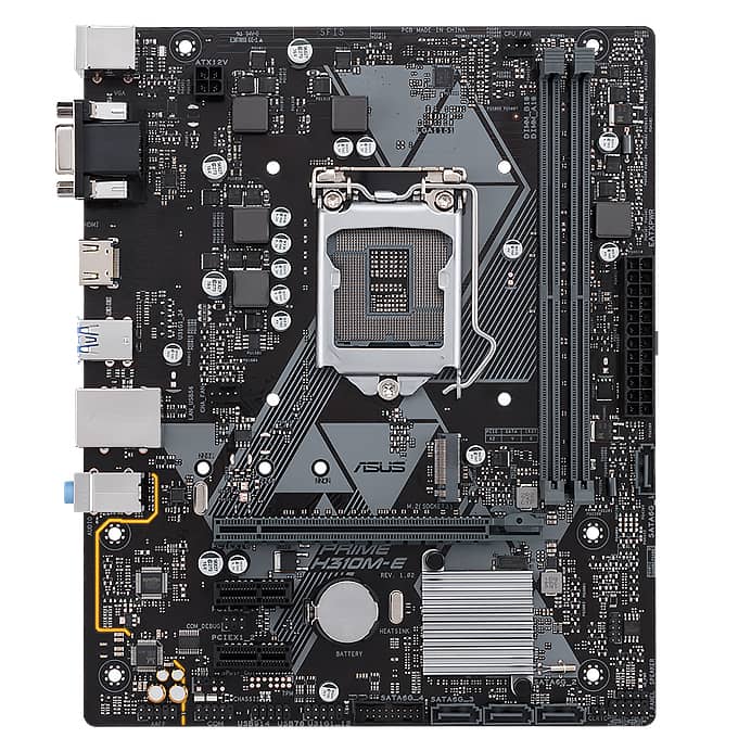 مادربرد Prime H310M-E LGA 1151 Micro-ATX ایسوس که به طور انحصاری از پردازنده های نسل هشتم Core i7، i5، i3، Pentium و Celeron اینتل پشتیبانی میکند، پایهای محکم برای اولین ساخت شما بهعلاوه انعطافپذیری برای رشد فراهم میکند. توسط تنظیم خودکار سیستم، کنترل های خنک کننده و صدای آنبرد پشتیبانی می شود. این مادربرد برای قرار گرفتن در کیس های اندازه میکرو ATX طراحی شده است، از سوکت LGA 1151، چیپست اینتل H310 پشتیبانی می کند و با ویندوز 10 (64 بیت) سازگار است. فرم فاکتور میکرو ATX Prime H310M-E می تواند تا 32 گیگابایت رم DDR4 را روی دو اسلات دو کاناله یا 16 گیگابایت در هر اسلات با سرعت های 2666، 2400 و 2133 مگاهرتز حافظه بدون بافر غیر ECC پشتیبانی کند. برای ذخیره سازی، چهار پورت SATA III 6 Gb/s و یک سوکت M.2 3، با کلید M، نوع 2242، 2260 و 2280 برای هر دو درایو SATA و PCIe 2.0 x2 وجود دارد. همچنین در مجموع دو پورت USB 3.1 Gen 1 Type-A (پنل پشتی)، یک کانکتور USB 3.1 Gen 1 (mid-board) وجود دارد که از دو پورت USB 3.1 Gen 1 اضافی، دو پورت USB 2.0 Type-A (پشت)، پشتیبانی می کند. برای کسانی که به دنبال گسترش سیستم خود با استفاده از PCIe هستند، یک اسلات PCIe 3.0/2.0 x16 وجود دارد که در x16 اجرا می شود، به علاوه دو اسلات PCIe 2.0 x1.