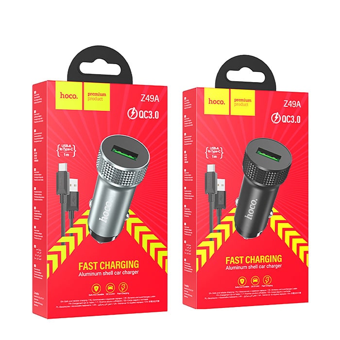 شارژر فندکی هوکو Z49A QC3.0 به همراه کابل تبدیل Type-C