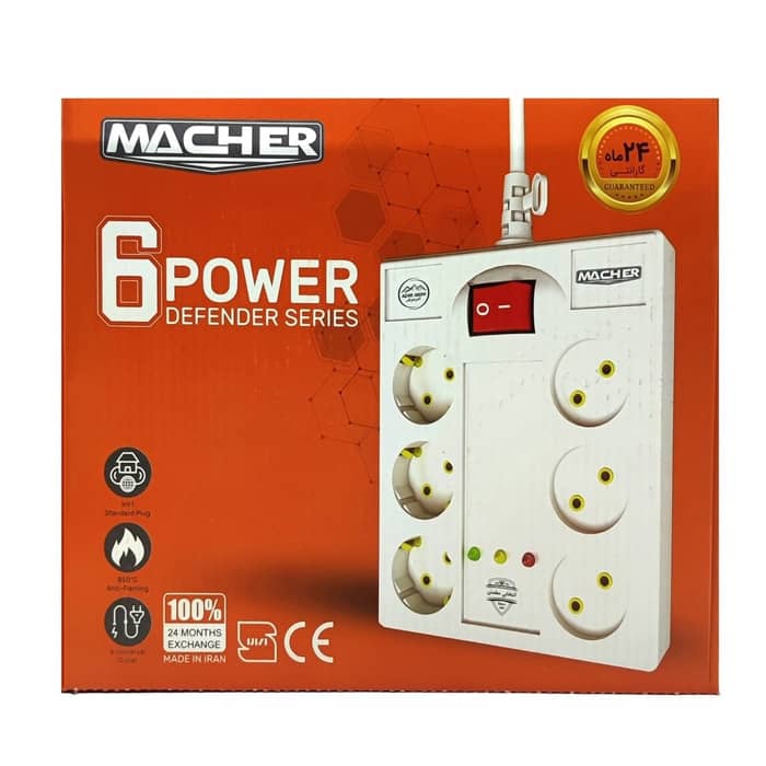 محافظ ولتاژ مچر مدل 6خانه mr 228 کابل 5 متری