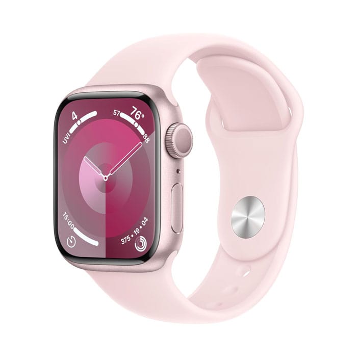 ساعت هوشمند اپل سری 9 آلومینیوم صورتی با بند سیلیکون صورتی 45 میلی متری