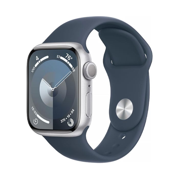 ساعت هوشمند اپل سری 9 آلومینیوم سیلور با بند سیلیکون آبی 41 میلی متری