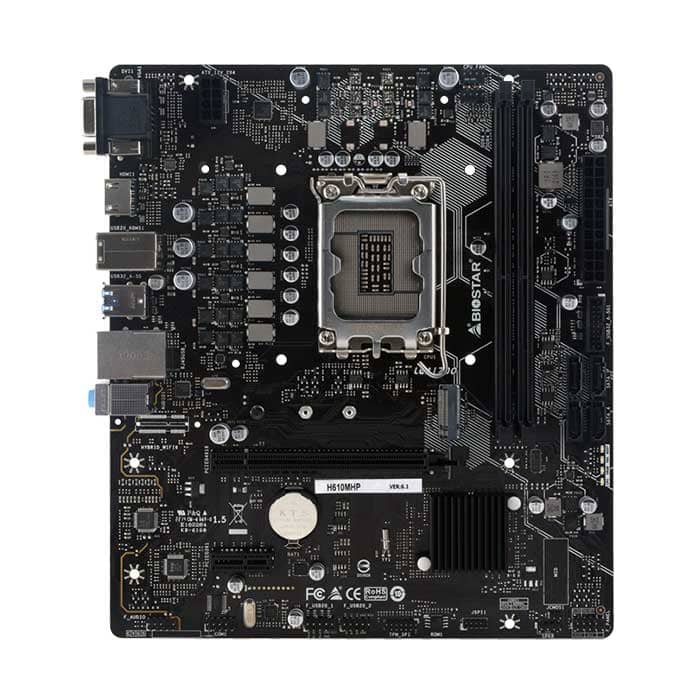 مادربرد BIOSTAR H610MHP یکی از مدل های اقتصادی و کاربردی شرکت بایوستار است که با چیپست Intel H610 و سوکت LGA1700 عرضه شده و از پردازنده های نسل 12 و 13 اینتل Core، Pentium و Celeron پشتیبانی می کند .