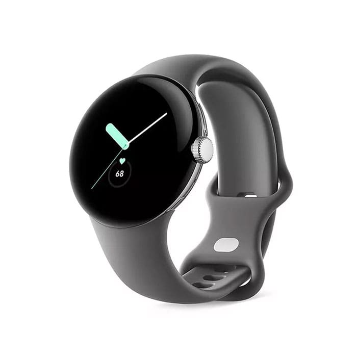 ساعت هوشمند گوگل Pixel با بدنه نقرهای و بند سیلیکونی خاکستری