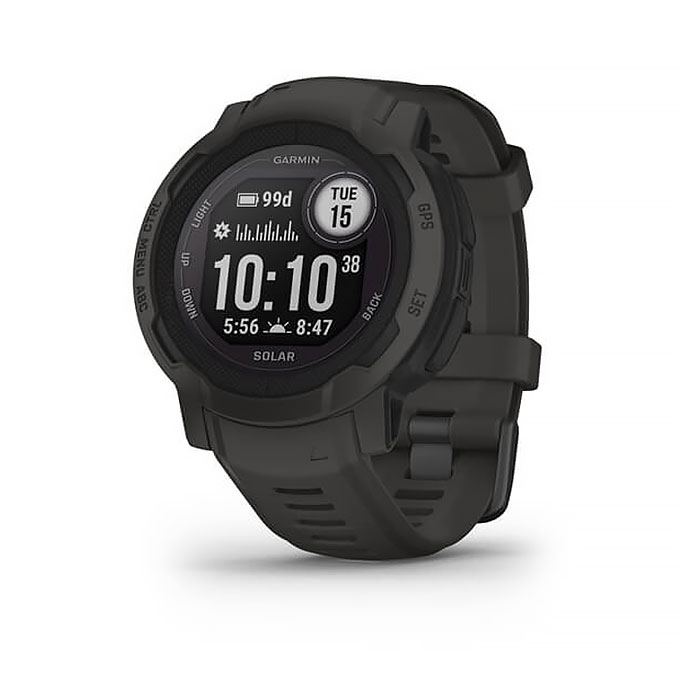 ساعت گارمین Instinct 2 Solar Graphite یکی از پرطرفدارترین مدلهای ساعت هوشمند ورزشی از برند گارمین است که با طراحی محکم و زیبا، برای استفاده در شرایط سخت و ورزشهای پرتحرکی طراحی شده است. این ساعت دارای پنل خورشیدی برای شارژ مستقیم باتری داخلی است که باعث افزایش عمر باتری و استفاده طولانی مدت از ساعت میشود.این ساعت دارای صفحه نمایش رنگی با قطر 1.4 اینچ و رزولوشن 280x280 پیکسل است که با استفاده از فناوری MIP، در شرایط نور کم و محیطهای خارجی قابل خواندن است. همچنین، ساعت گارمین Instinct 2 Solar Graphite دارای گستره وسیعی از قابلیتهای ورزشی، از جمله شمارش گام، شمارش کالری، نظارت بر ضربان قلب، نظارت بر استراحت قلب، نظارت بر مراحل خواب، وضعیت فعالیتهای ورزشی، وضعیت تناسب اندام و... است.ساعت گارمین Instinct 2 Solar Graphite دارای قابلیتهای هوشمندی مانند اعلانهای هوشمند، کنترل صوتی، ارسال پیام، ارتباط با سایر دستگاههای هوشمند و همچنین قابلیت ردیابی GPS برای نشاندادن موقعیت مکانی در نقشه میباشد. همچنین، این ساعت دارای مقاومت در برابر آب تا عمق 100 متر میباشد که اجازه میدهد تا در فعالیتهای آبی مانند شنا، غواصی و ... استفاده شود. با وجود امکانات بسیاری که در این ساعت وجود دارد، وزن آن نیز بسیار سبک است و کاربران میتوانند به راحتی آن را در هنگام ورزش با خود حمل کنند.