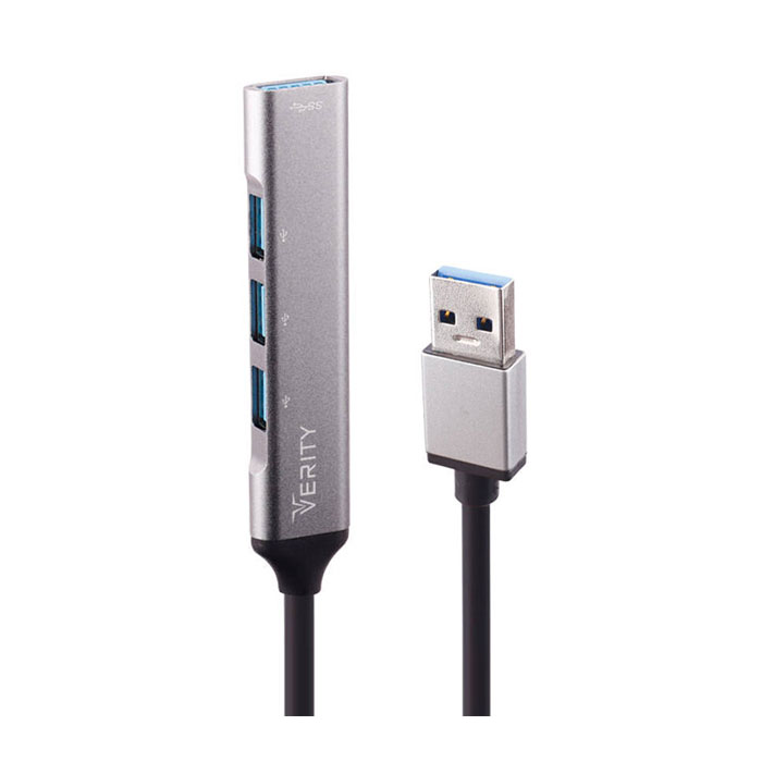 هاب 4 پورت Verity H410 USB 3.0 امکان اتصال همزمان چند دستگاه USB مانند فلش ، هارد اکسترنال ، موس و کیبورد را با سرعت USB 3.0 فراهم میکند. گزینه ای کاربردی برای افزایش تعداد پورت های لپ تاپ و کامپیوتر است .