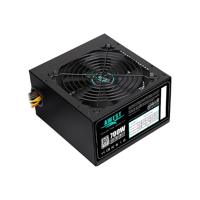 پاور AWEST GT-AV700-BW یک منبع تغذیه ATX با توان 700 وات و طراحی غیر ماژولار است که برای کاربرد های متوسط و سیستم های گیمینگ میان رده طراحی شده است . این منبع تغذیه دارای فن 120 میلی متری برای خنک سازی مؤثر ، و کابل های ثابت از جمله کانکتور مادربرد 24 پین ، کانکتور 8 پین (4+4) برای پردازنده ، دو کانکتور PCIe (6+2 پین) ، چهار درگاه SATA و سه درگاه Molex است . ریل +12 ولت قابلیت تأمین جریان تا 50 آمپر دارد و محافظت های OVP ( اضافهولتاژ ) ، OPP ( اضافهبار ) ، SCP ( اتصال کوتاه ) و OTP ( افزایش دما ) در آن تعبیه شده اند تا ایمنی قطعات سیستم شما را در شرایط نوسان برق تضمین کنند .