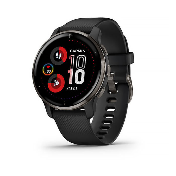 ساعت گارمین Venu 2 Plus Slate Stainless Steel Bezel With Black Case And Silicone Band